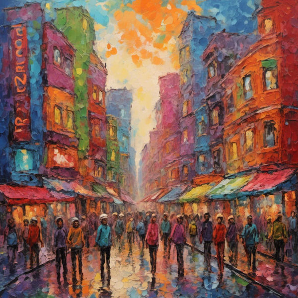 In this neo-impressionist cityscape, the harmonious blend of culture unfolds like a living canvas. Streets lined with diverse architecture showcase a fusion of traditions, each building telling a unique story. The air is filled with the tantalizing aroma of global cuisines, as open-air markets invite exploration into a tapestry of flavors.